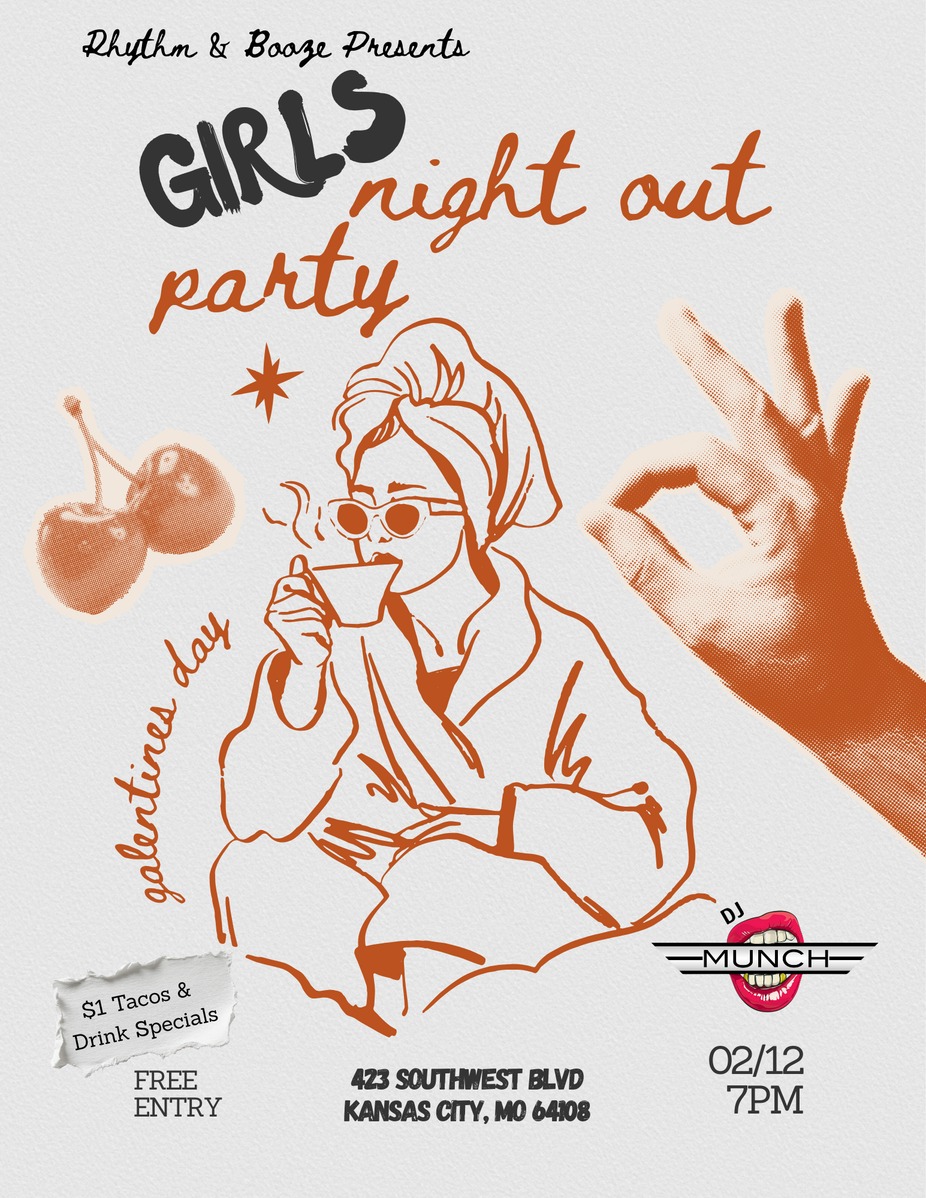 Join us at Rhythm & Booze for our 1st EVER GIRLS NIGHT OUT Event!! It's an EARLY Happy Hour Party for all of the MOMS out there!! $1 Taco Specials, Drink Specials and DJ MUNCH spinning our favorite tunes!!! The Party is from 7-10 ONLY so get the kids situated then come out for a few with your favorite friends at R&B!!