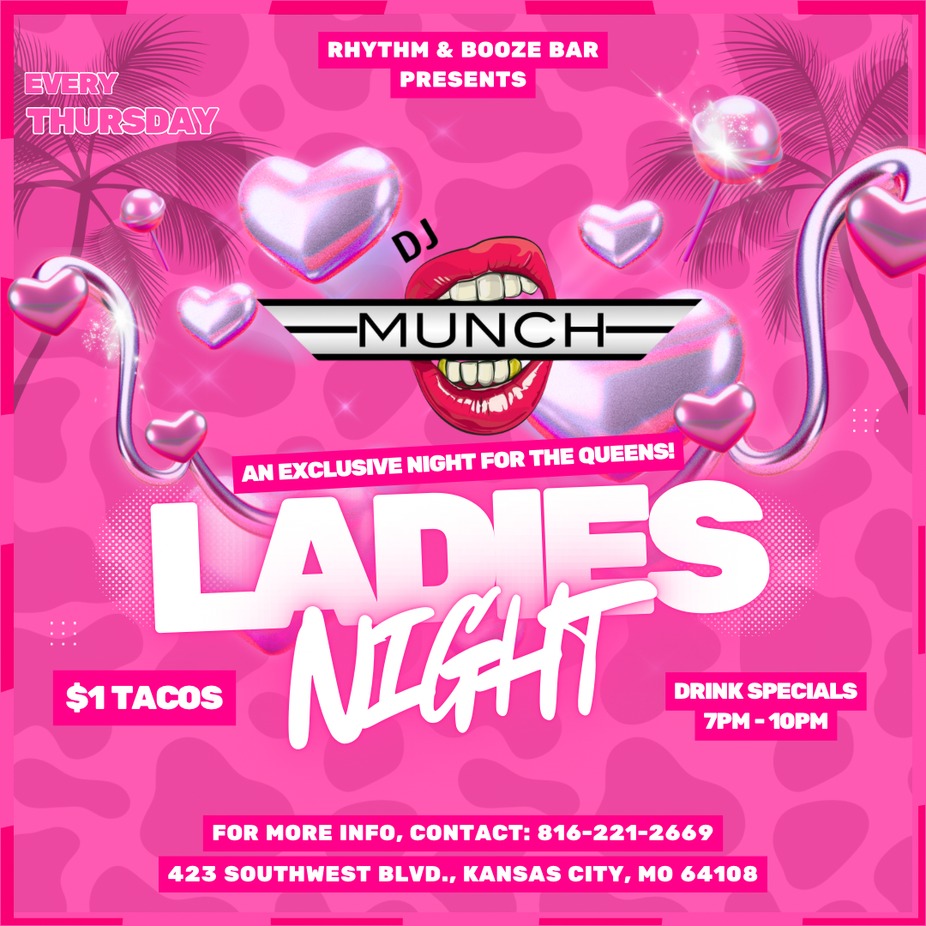 Join us at Rhythm & Booze for our GIRLS NIGHT OUT Event!! It's an EARLY Happy Hour Party for all of the MOMS out there!! $1 Taco Specials, Drink Specials and DJ MUNCH spinning our favorite tunes!!! The Party is from 7-10 ONLY so get the kids situated then come out for a few with your favorite friends at R&B!!